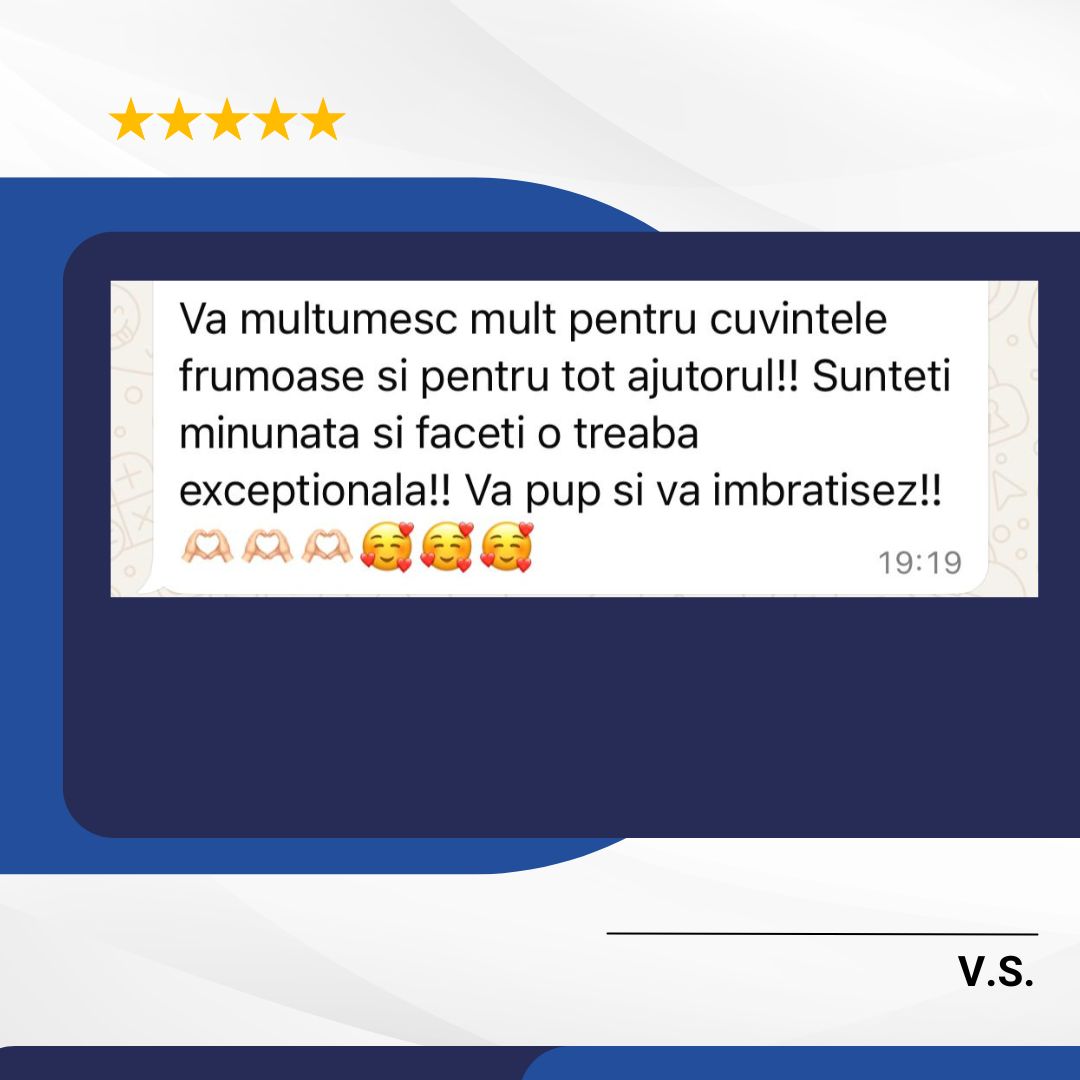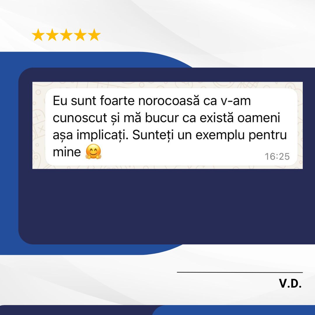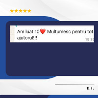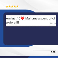 Sunteți ceva!!! Mulțumesc din suflet, n-am cuvinte sa va mulțumesc! Fără dvs nu reușeam. Sa va dea Dumnezeu sănătate sa ajutați și generațiile următoare cum m-ați ajutat pe mine❤️❤️❤️(A.M.)