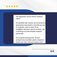 N-as fi reusit probabil sa promovez niciodata acest examen fara dumnevoastra! Sunteti un fauritor de vise si sper in continuare sa-i ghidati si sa-i ajutati pe toti cei fara de speranta, asa cum am fost si eu ❤️ (A.L.)